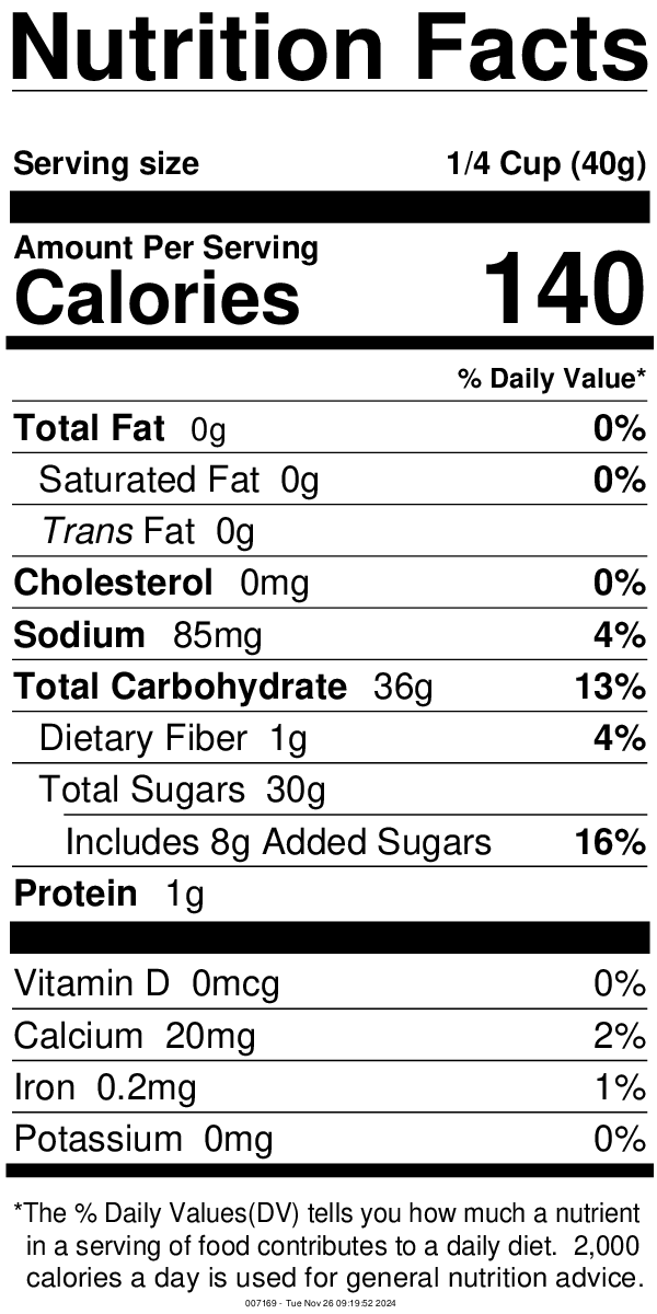 Shared Equipment Statement | Manufactured on shared equipment with peanuts, tree nuts, wheat, milk, soy and sesame. |